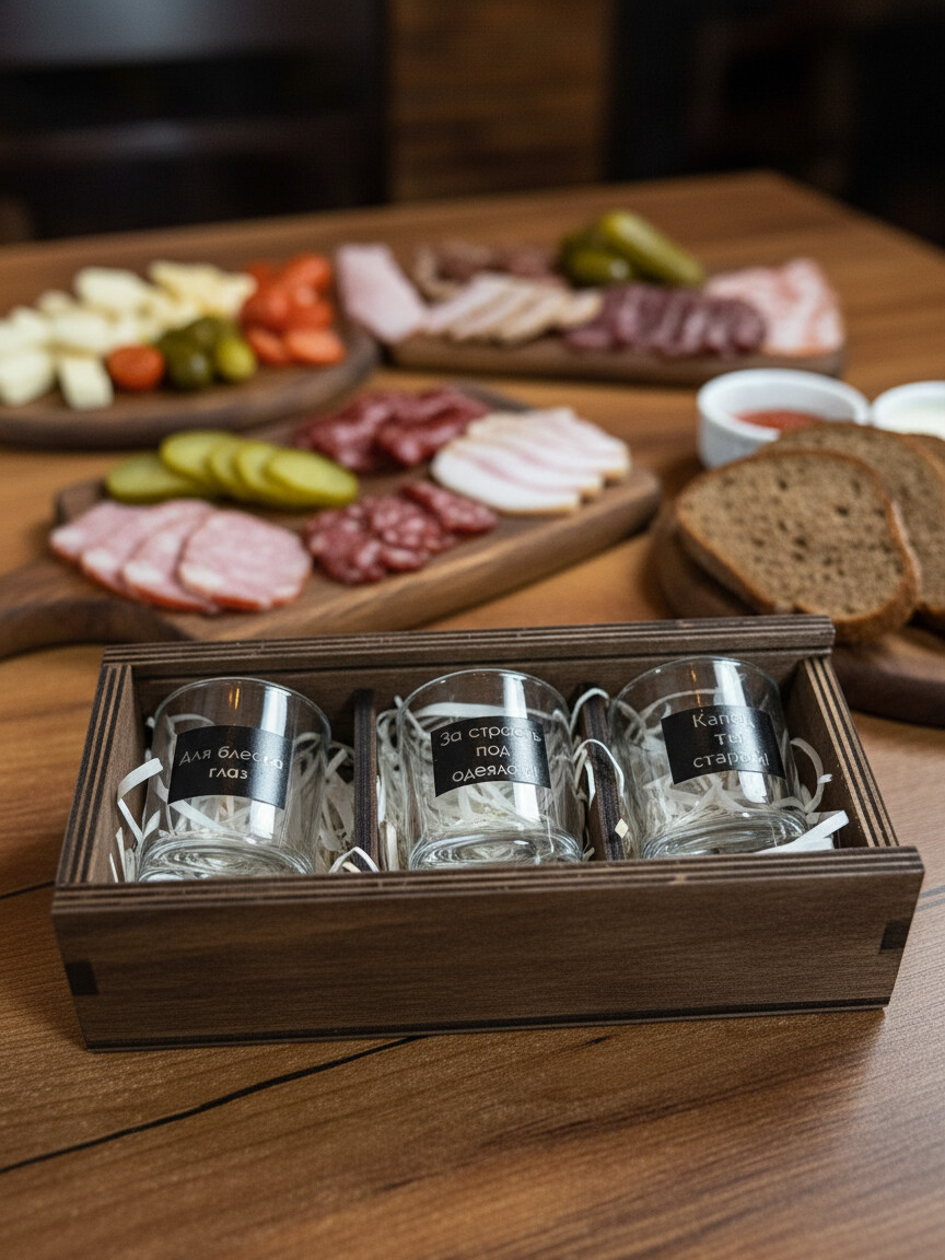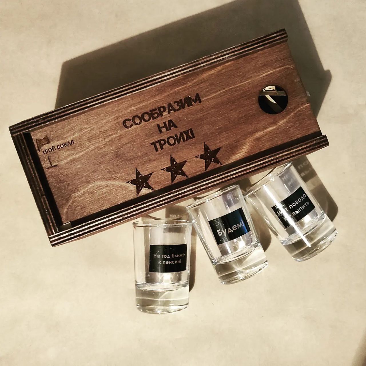Текст на деревянную коробку вы можете предложить по своему усмотрению.