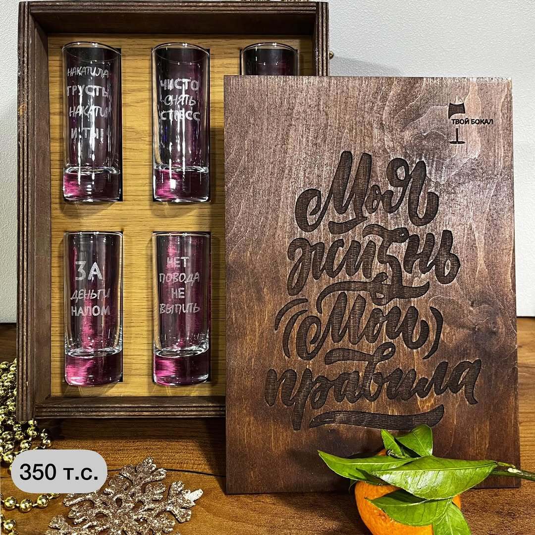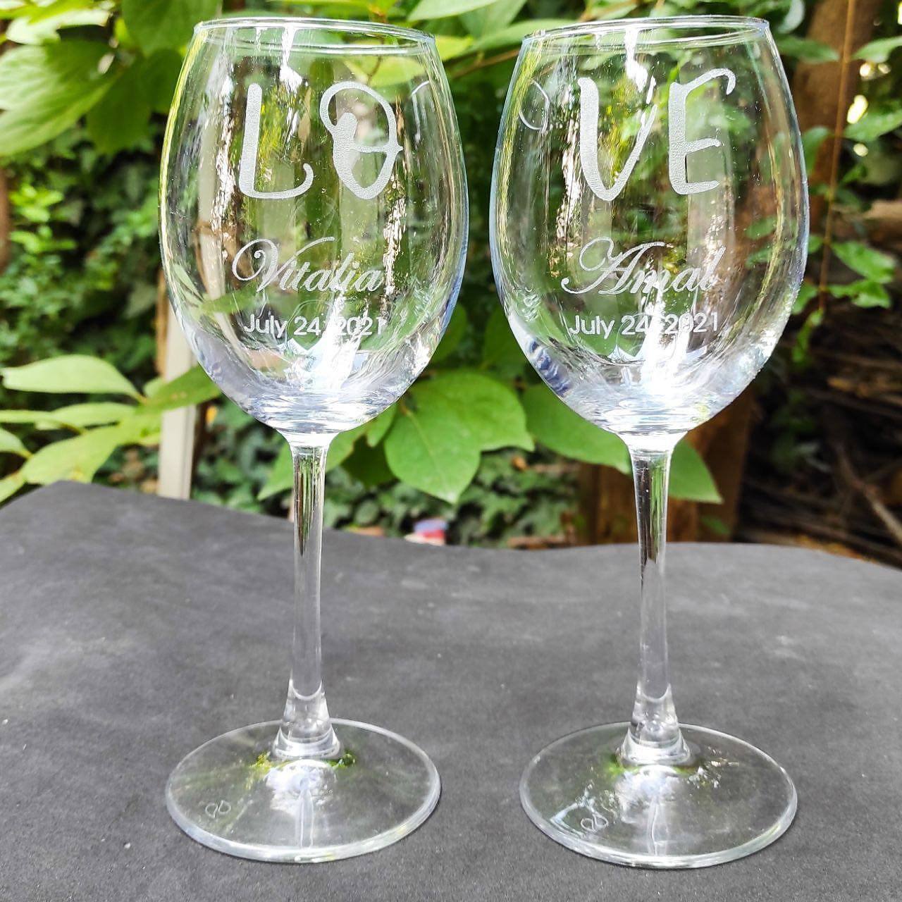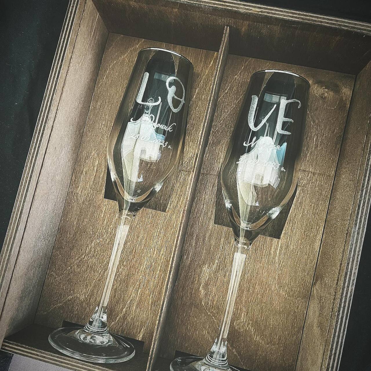 В даном продукте вы можете выбрать свой текст на гравиировку на бокалах.