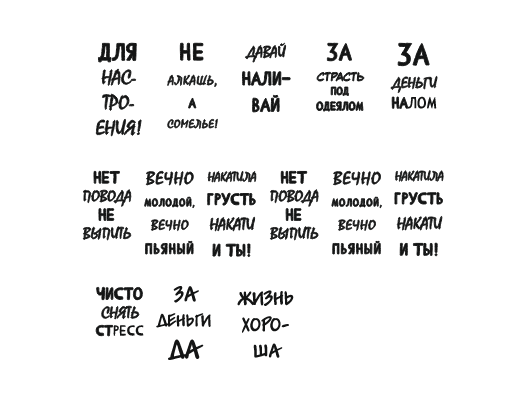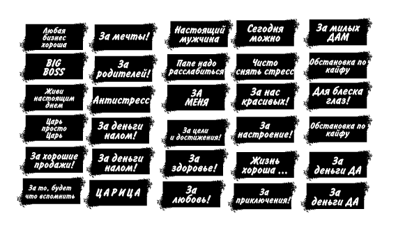 Текст на шоты вы можете выбрать из перечисленых на фото.
